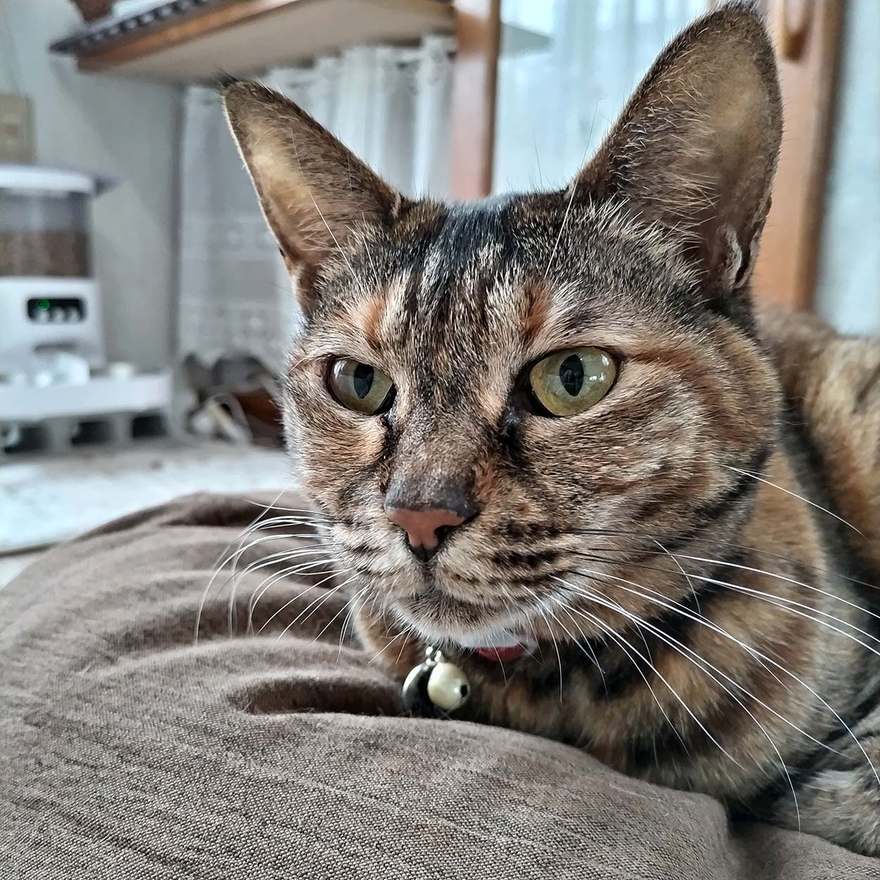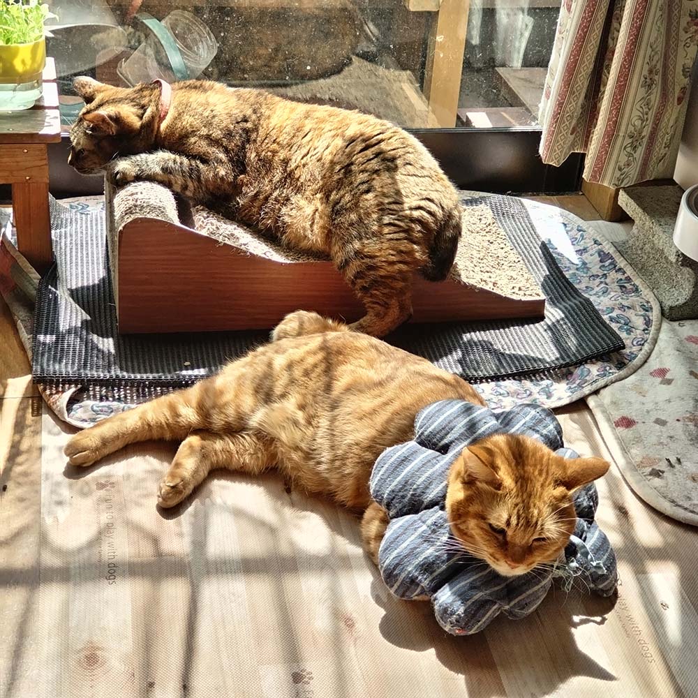 朝5時、「ごはん頂戴攻撃」でにゃあにゃあベッドの私の上を乗っかってくる空ちゃん本来は6時にごはんは出てくるんだけど、我慢できず自動給餌器onごはんの出てくるパラパラという音が聞こえたのか、空ちゃんはすっ飛んで行き、鈴ちゃんもそれについてとことこと給餌器ヘ向かった凄い嗅覚だわねえと感心しちゃうわ最近1時のあと3時半をやめて6時と間をあけちゃったからお腹空くのかもなあ最近、なぜかふたりとも私の部屋にいることが多いベッドに登るわけでも無く鈴ちゃんはパーカーの上に丸まって寝ているし、空ちゃんも・・・・鈴ちゃんはあまりに寝ているので心配しちゃうけれど、ごはんの時間になるとちゃんと催促するし、それもちゅーるを催促私の部屋が静かで落ち着くのかなあ