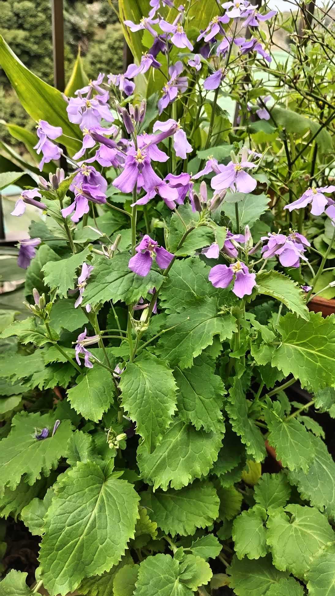 どこから種が飛んできたのか”花大根”の綺麗な紫
