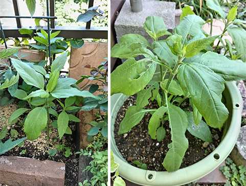 去年の堀り残しからも伸びてきた(トマトの隣)