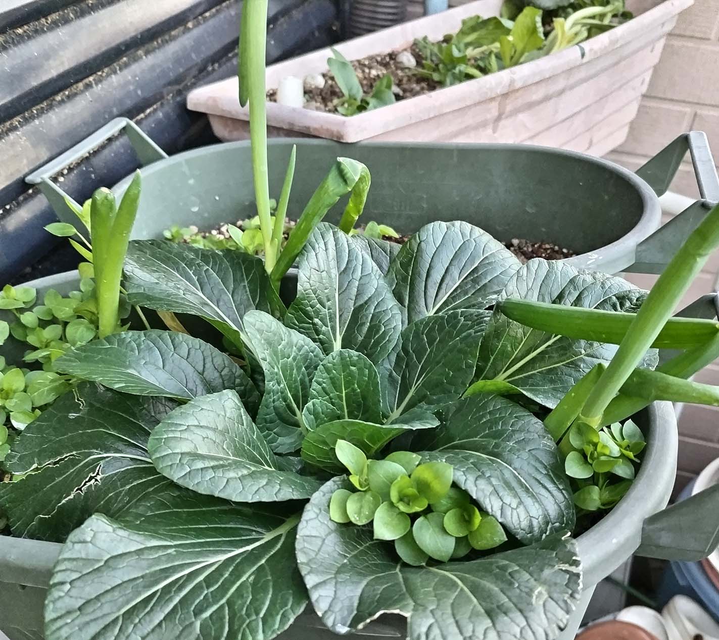 小松菜や長葱等、スーパーで買ってきた野菜で根の付いているのがあれば取りあえず土に刺してみる・・・って感じ