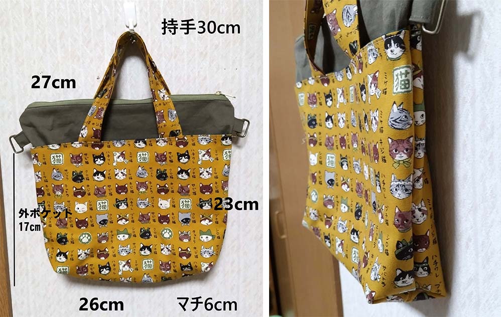 猫ちゃん柄ミニトート 内側にもポケットを1個付けました