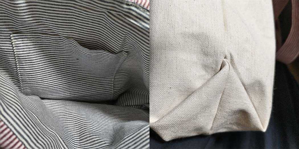 本体は11号帆布・口布と持手・ファスナーポケットはワンピース生地