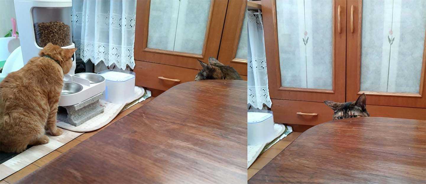 自動給餌装置からの鈴ちゃん  ふたりしてちょっとずつダイエットしようね