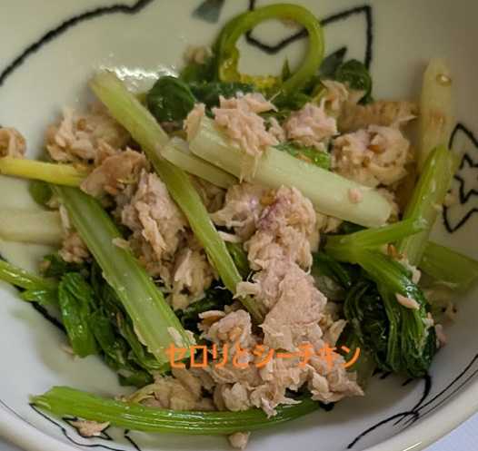セロリが安かったので嬉しくて葉をチーチキンと・・・あとは 甘酢漬けと茹でてサラダに~
