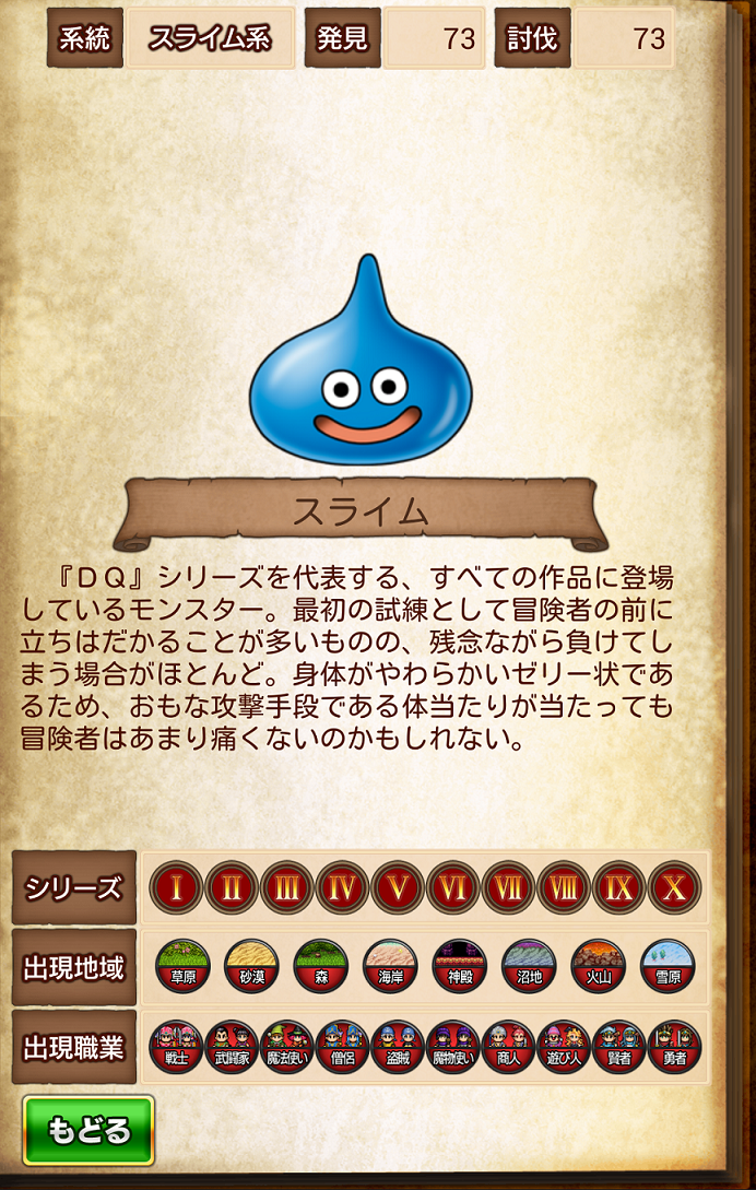 このゲームでは、倒したモンスターが図鑑に登録されていきます。