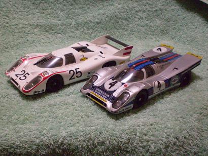お休みです。あまり進んでないので・・・私の、ちと前に、はまっていたスロットカーの画像です。最初は1/32です。殆どマグネットで、へばり付いて走りますが私のは、殆どマグなしにして有ります。(テールが、流れて面白い為)つぎは1/24です。2台ともプラモデルのボディを、載せてあります。917Kは、凄く早いです。ただ1/24は、コースが、少なく世田谷まで行かないと走れません!