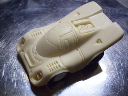 シリコンが、硬化するまでつぎの作品(またP!!)を、削り始めました。リヤの穴は、作業台に固定する為開けてあります!917の複製は、とりあえず8台まだいけそうですがそろそろ、スリットのあたりが、あやしくなってきました!やはり、シリコン変えないと数は出来なさそうです!