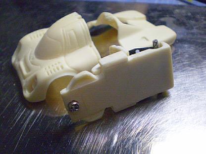 作ってみました。ちびっ子モーターを使っての、自作シャシです。モーターの前の部分は、シートで固定します。まだ、フロントタイヤ、シャフトをつけていません!もん太さんが、言ってたけど、レジン同士を瞬接でつけると結構丈夫に付きます!!