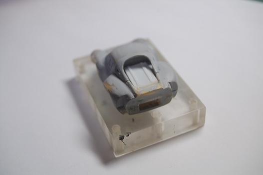 のらさんから、頂いたホイルをはかせてみました。凄くいい感じです!!スタンダードで、早く完成させないと・・・あと、ジネッタですが、ライト枠を左側だけキャストの削りだしで作ってみましたが、ちとでかいみたい!!これじゃ、出目金?それと、エンジンフードの屋根部分、別パーツなのでそこだけ、シリコン風呂に入浴中です。上手くいくかな?・・・
