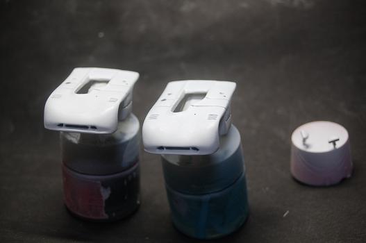 シリコン風呂2回から、上がりキャスト複製、とりあえず3台づつみんな修正が、必要です!!ポルシェもジネッタも、特にフロントの下に気泡が出ます!!2回やっても同じだったのでとびうおさんが、やっていた 裏技遠心脱泡、試してみました!!バケツだと、部屋が狭いのでシリコンの(1キロ缶)空き缶に型を入れスーパーのビニール袋に、缶を入れて10回位手首だけで振り回しました!!結果は、908の3台のうち左が、遠心脱泡したものです。驚いた事に、圧力鍋で加圧したものより綺麗に、リップスポイラーまで、抜けてくれました!!最初は、本当に上手く、気泡が抜けるのか?マークでした。(とびうおさんすみません!!)明日は、この方法で何台か抜いてみます。