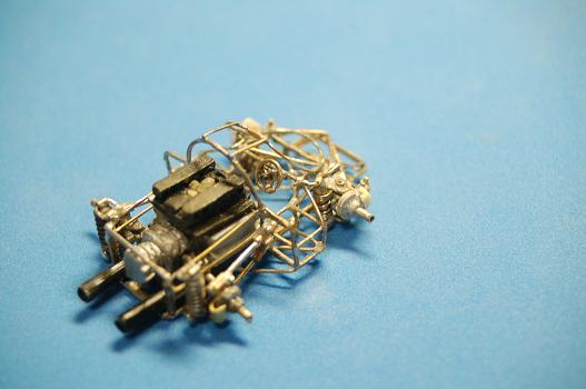 こんなのを挑戦してみました。プレス屋さんの友達に0.4ミリの真鍮板 (幅1.5ミリの帯状の物)を頂いたので、ガスの火であぶり軟らかくして前に作った356を原型にして、たたき出しハンダで各パーツをつけました。まだ、大まかな形しかできていません!まだ試作なので、ほかの制作合間に少しずつ制作して行こうと思っています。