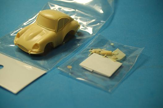 型が出来たので、キャストにしました。ところが、原型の形が悪くて、1台のみで型は千切れてしまいました!!1台抜いた物も、裏には気泡がでました。今原型を直し、また、シリコン風呂に入れました。駄目になった箇所は、屋根のインテークで、原型の型は、一寸穴が深すぎました。小物も、複製したのですが、私としては、まぁまぁです!(リヤスポに少し気泡あり)今回初めて、べビィパウダーを使いました!!良いとは知っていたのですが、使ってませんでした。先日、nmomokaさんのところに、行ったときに本当にいいからと聞いていたので、複製の時には絶対使ってみょうと思っていました。細い0.5の線も複製できました。(プロにはかなわない!!)明日シリコンが硬化したら、また、複製に入ります。
