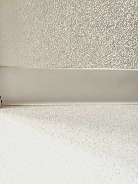 こちらはトイレの巾木。ホワイトを選んでも一瞬、グレー系に見えます。