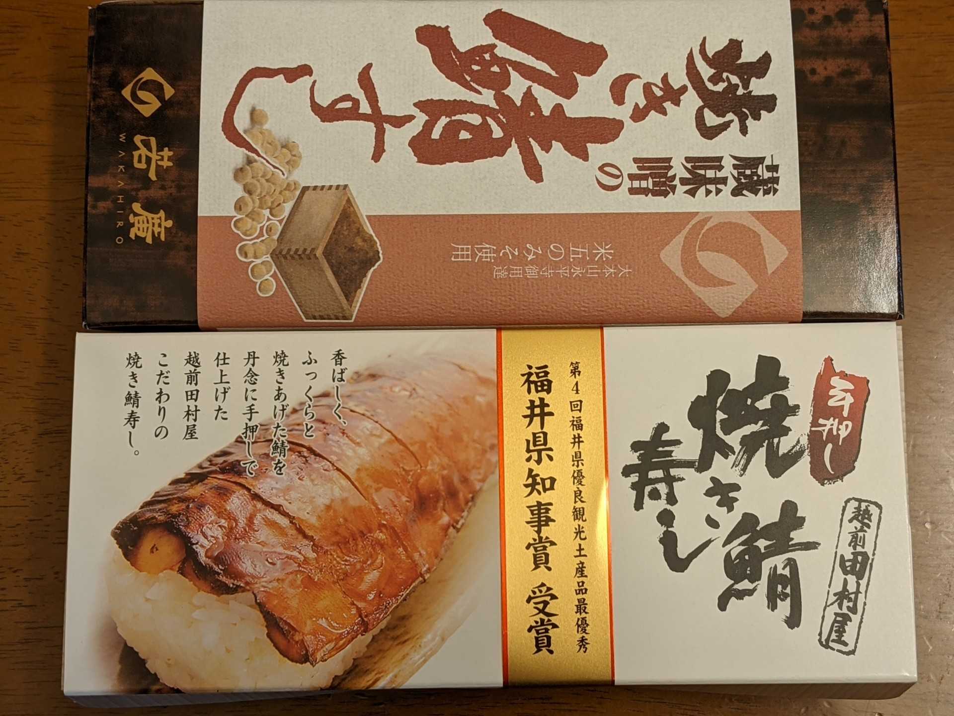 コロナウイルス感染者数は、少し下げ止まり傾向が続いてるねん。いよいよ当院では、3回目のコロナワクチンの接種が1月から始まるようやでまた、あの苦痛か~いややなあ東京は横ばい~上昇? 5名(11/24現在)大阪は減少傾向 9名(11/24現在)石川県は 0名(11/24現在)福井県の若狭で焼き鯖寿司Getしてきたし紹介やで今回、買うてきたんは、期間限定の焼き鯖寿司(若廣)と焼き鯖寿司(田村屋)の2つ田村屋さんのは、これまでのpotimameのブログで紹介したことがあって美味しいのはわかってるねんなんで、今回はコメントは割愛するでブログちょいみてみてやまさか福井で名古屋コーチン⁉ 鯖寿しはここが旨し(^^♪ 焼鯖寿司は田村屋が一番旨いで(^^♪ 味噌味もあるで! 期間限定の焼き鯖寿司(若廣)は、どんな味がするんやろか気になるんちゃいます上が若廣、下が田村屋さんですわ焼き加減もええ感じで、若廣さんの方が味噌ついてるし、よう焼けてる感じがする中はこんな感じで、若廣さんは、お味噌で色がついてるんやろか田村屋さんと比べたら色がちゃう若廣さんは具なし、田村屋さんは椎茸、生姜入りですわ食べた感じはどないやねんって身の厚さを感じる:若廣<田村屋脂が乗ってる:若廣<田村屋食べごたえ:若廣=田村屋美味しさ:若廣>田村屋若廣さんの鯖寿司等のラインナップはようさんありますわこの2つの鯖寿司では、味付けのジャンルが違うし評価しにくいなあ食べごたえは、田村屋さんやけど、美味しさは味噌味がええ感じの若廣さんですわ期間限定の若廣さんの焼き鯖寿司はお奨めやで田村屋さんの味噌味の焼き鯖寿司は、もう忘れてしもたけど、鯖の味噌煮のようなとコメントしてるし、また若廣のとはちょいちゃう感じもしますねえ【お歳暮(御歳暮)ギフト2021にも!】元祖!空弁の若狭小浜「若廣」焼き鯖寿司&鯖寿司[送料無料]≪※賞味期限の関係上、お届け日時のご指定をお願いいたします!≫≪※お届けできない地域:北海道・東北・中国・四国・九州・沖縄・離島地域≫価格:3750円(税込、送料無料) (2021/11/24時点)楽天で購入 【冷蔵便】越前田村屋 こだわりの 手押し焼き鯖寿し価格:1180円(税込、送料別) (2021/11/24時点)楽天で購入