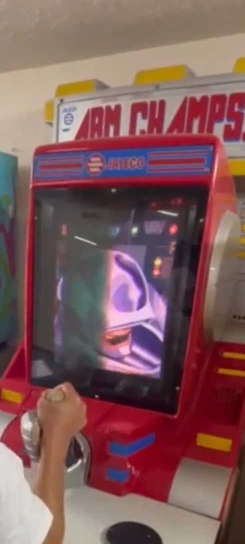 この腕相撲のゲーム懐かしい!大人になりましたので一番強いモードで挑戦!