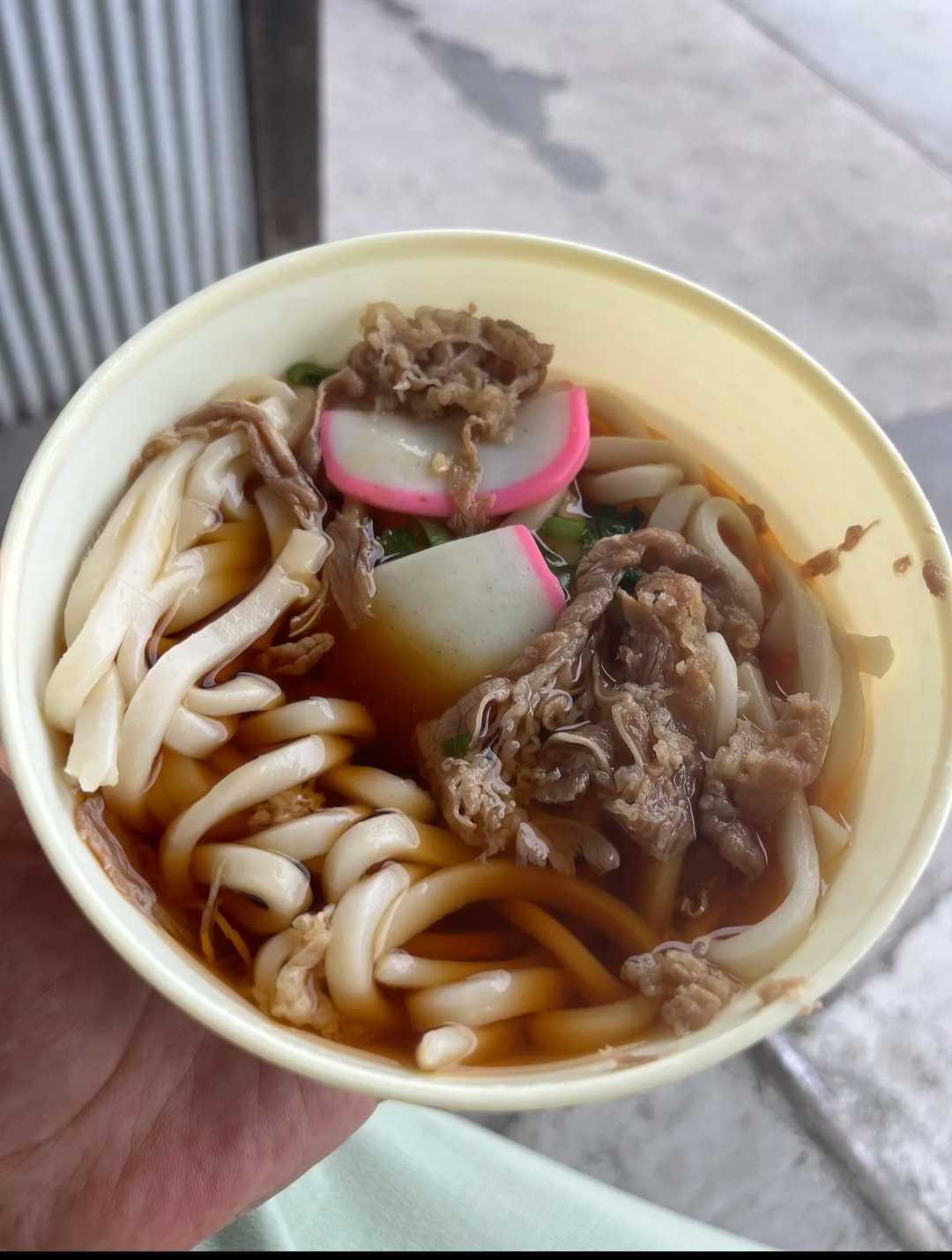 麺は柔らかめだけど、それが逆に「昔の駅そば感」あって懐かしい。甘辛く煮た牛肉がちゃんと入ってて、汁を吸った肉と一緒にすすったら、意外とおいしい!