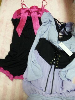 夢展望さんで買ったものがいろいろ届きました☆とりあえず二つご紹介♪¥2980これのLサイズのラベンダーを購入。右の写真でわかると思うんだけどスカート部分の色とバスト部分の色みがちょっと違う><泣。。。サックスとラベンダーって感じですね。また後で着画も載せます。あとこちら¥2980これもLを購入したんだけど。。。でかいかも><ウエストのだぼだぼな感じがちょっと多いです。でもさ、普段Lサイズなのできっと大きめなのかもです。色はカナリお気に入りのです。やっぱ黒×ピンクが私は好きみたいです(笑)他にも可愛い商品がたくさんあります。やばい~これ超タイプ♪¥1980clickしていただけると嬉しいです。 ¥980↑靴¥1680だよ