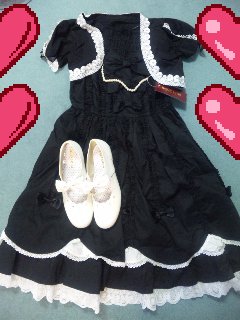 買ったのはこの二つです黒購入白購入。(黒は購入済み)黒は写真で見づらいですね><ワンピ可愛いです!後ろも編み上げになってて。レースもフリルもたくさんついててかなり大満足。アイロンしたほうがいいかもです。でも残念なのがVネック・・・・。気づかず購入。でも、大きい襟のブラウスを下に合わせたら見えないので問題なしですね!お靴も可愛いですほんと☆これ三点セットだって!かなり可愛いです☆カチューシャの大きさも形もよさそう♪clickしていただけると嬉しいです。 ¥1380