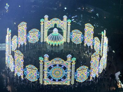 光のアーチをくぐり抜けると、東遊園地の会場に着く。