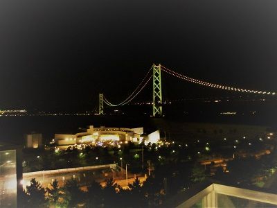 窓からこんな近くに明石大橋が見えた。