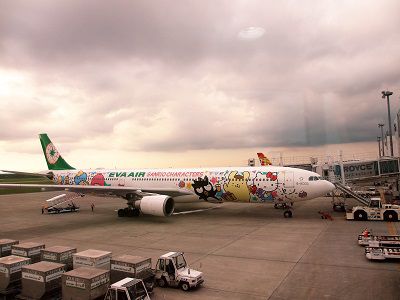 我々はキャセイパシフィック、お隣はエハー航空のキティの機体。