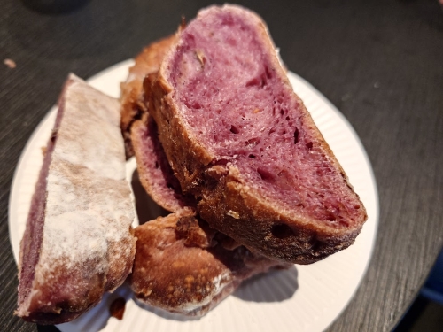 近江八幡に住んでたらどれだけ太るのかって想像しちゃう。husが一目ぼれしたオレンジブレッド。てっぺんにもオレンジいっぱい。中にもなかなかぎっしり、そしてふわふわ、なんて美味しいの♪♪あ・・・ボケてる。クランベリー&くるみのパン。ハード系もなかなか美味しくてもう大満足♪♪♪