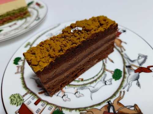 レートクリーム、ウイスキーシロップ、カリっとしたのチョコレート生地。
