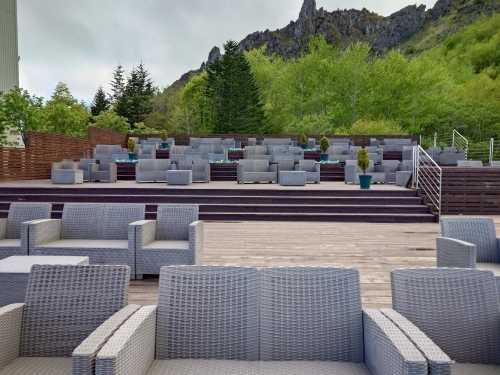 テラスと名付けただけあって椅子がずらーっと並んでいる。
