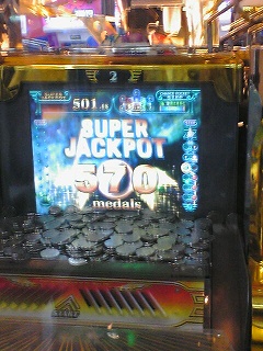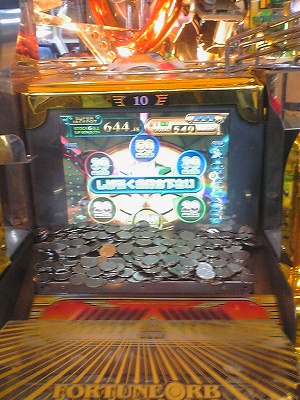 今日は一日中ゲームばっかでした。起きてから即効でPS2つけてキングキャメルやってたし。オートプレイだったのであんまり当たりませんでしたけどね。そして昼にSREと一緒にゲーセンへ。俺はプッシャー(落ちゲー)が大好きなのでオーブキングダムという中規模なプッシャーをずっとやってました。(ここにいる男子がリーチのときにほとんど外すので大嫌いです)結果を書くと7の大当たり 2回通常DirectChance 1回(orb利用では・・・10回くらい)通常ジャックポット 5回SJP 1回 (約530枚)確変入賞 20回以上(最高7連荘)通常入賞 数えてない とまあなかなかの結果ですね。特に7の大当たりは壮観でした。7の入賞の場合SJPチャンスになるまで全部で6つあるチャンスポケットに玉が入り続け、その間に他の5つのポケットに入った数によって払い出し枚数が決定され、SJPチャンスポケットに入ったら終了なのですが・・・SJPに入る確立は単純計算で6分の1です。しかし今回は信じられないことになりました。 ちょっと見にくいですが左上の数字がSJP枚数、右上の数字が7の入賞で獲得した枚数で、その間に挟まっている赤い数字が玉の放出回数です。644と540と21と出ています。ほとんどSJPと同じ枚数です。よく見るとまだ青のポケットに玉が入っています。この後SJPポケットに入賞し、合計580枚ゲットしました。SJP自体ははずしましたがJPトレーが・・・JPシグナルが6つだったのでこの後シングルで当たり。JP当たりで台上がすごいことになってました。この後いろいろと台を変えてやってたらSJP当たりました。ほとんど意味なかったけど。 結局全部消費しましたがここまで持つとは思いませんでした。また行きたいなぁ・・・