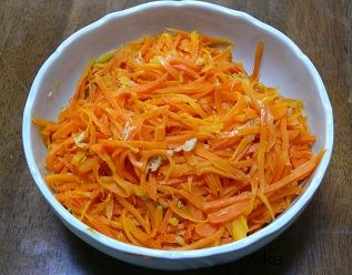 ニンジンをスライサーで細くおろして卵などと炒めた料理