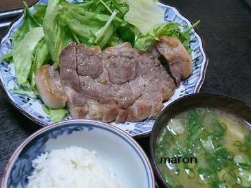 後期高齢者の親のの夕食。80歳過ぎてはりますが、食材を極端に柔らかくしたり、刻まなくても普通食、食べられます。食べにくい時は、はさみで切って食べてはります。母も、退院時は食欲がなく、食べられるものが限られていましたが、今は、少量ですが食べられるようになっています。誤嚥で、むせて、咳が止まらない状態になり、しばらく苦しそうにしている事はある。↑後期高齢でなくても あるある…。豚テキ。付け合わせは、レタスのサラダお豆腐とねぎの味噌汁ご飯いただきます。ご馳走様でした。