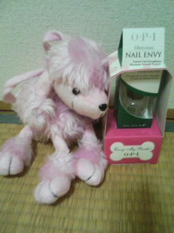 ↓Yにもらったお土産の1つ。「O・P・I」のnail strengthener。こ~んなかわいいピンクのプードルのポーチ付き♪(もちろんポーチはべーさん用になりました・・・)