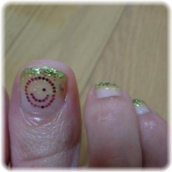 ホロの色が薄すぎで、立ち上がって自分のつま先見たら、ピースマークにもニコちゃんにもその他何にも見えません