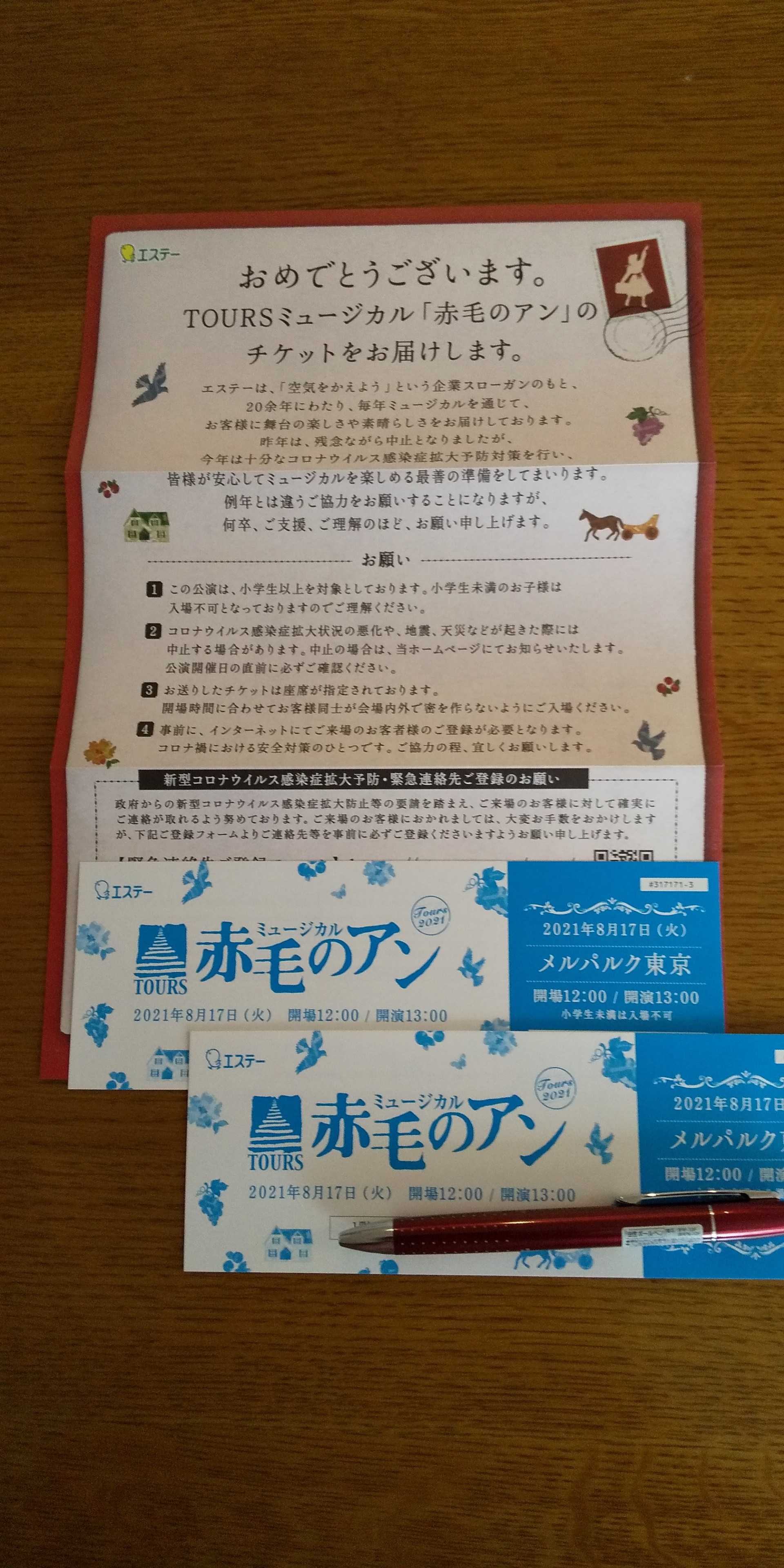 エステー TOURSミュージカル「赤毛のアン」ペアチケット