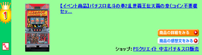 12月11日付けの楽天商品売れ筋ランキングにてパチンコ機部門・パチスロ機部門両方堂々の第1位を獲得いたしました!!イベント品の北斗2は大好評にて完売となりました!イベント品のCR中森明菜CXはまだ若干在庫ございます!通常商品のパチスロ北斗2は現在在庫は残り1台となっております!興味がある方は覗いてみてくださいね。イベント会場はこちら