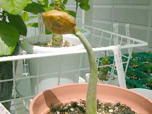 4つのうち一つの種が土の中でパックリ割れているのを発見。