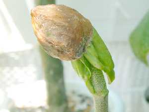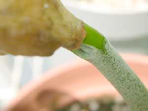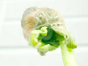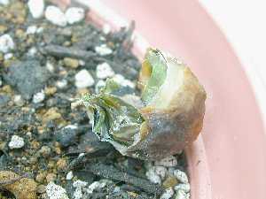 ショック! 殻の下から二枚見えていたうちの一枚の葉が切れた! 泣