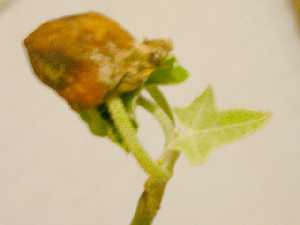 今朝見たら、まっすぐを通り越し、反対側にこんにちわしていた。