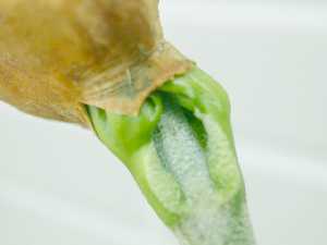 殻が取れて、クシャクシャに縮こまっていた葉っぱが見る見る開きました。