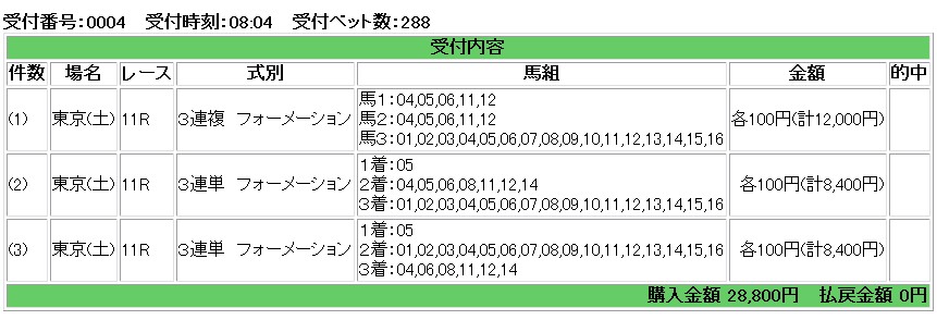 うーん、布石だ。 まあ納得せざるを得ないな。 シンザン記念ともうひとつのレースで巻き返すしかないな。