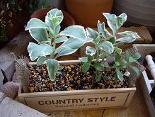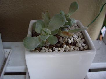 こんにちわ!!すごい雪でしたよね~~11年ぶりだそうですわが家の父ちゃん急いで車につけるチェーン購入しにいきました。何故次の日父ちゃん仕事だったので、仕事いけるか、アセアセしながら、チャリぶっとばして買いにいきました。なんと \21800也 高けぇそして、取り付けて、よっしゃッッちょっっと走りに・・・。しか~~し、夕方には雪もやみ、幹線道路走ったら、雪なんてほとんどない。ガタガタガタガタ・・・・・。めっちゃうるさいタイヤの音・・・。みんながその音に振り返る。 私は恥ずかしいから、下を向くお父ちゃん、一人ご機嫌♪どうや~~これで安全にはしれるで~~♪私、一言「 はずかしい~~」子供らもブーイング「ガタガタ・・。うるさい!!」と言われ、お父ちゃん少し肩を落として、「ほな、はずそうか~?」と弱気で途中コンビ二の駐車場ではずした。ちゃっと、待って結局 \21800 はパーやんけ~~1夜明け、日曜日の朝は、お天気♪めっちゃあったかい雪はますます溶けて、ほとんどない・・・。チェーンなんかつけんでも、車は余裕で走れる・・・。えっっ使うか、使わへんかわからんもんに 21800円かよ~~ふざけるな~~ばかやろ~~雪なんかふるな21800円もあったら、めっちゃいい多肉買えるやんおいおい多肉かよ・・・・・・。というわけで、はい今日の多肉ネタ先日bisuiさんのところで、紹介された銀ちゃん。そう銀武源。この前近くのショップでみつけた~~。やっと会えた~~。このまま会えなかったら、ネットで探すしかない!!と思ってたとこよ~~。早速、おかいあげ~~はいお披露目 でも、bisuiさんのとことは、ぜんぜん違う銀ちゃん。ほんまにあんた銀ちゃんかと思うぐらいです。bisuiさん所みたいに、早く、ぷりぷりに色よくかわいくそだっってほしい~~!!最後のネタは、ハーブミントです。今朝みたら、もう春はそこ!!と思うような、新芽がでてました。