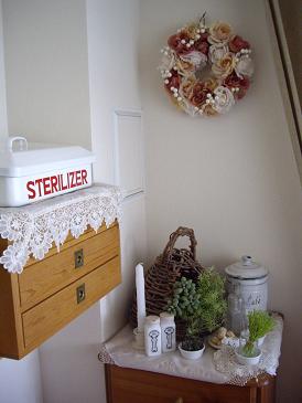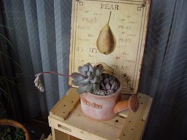 こんにちわ!暖かい日が続いてると思ったら、昨日はめちゃ寒かった~。雨だったしね・・・。長男、どんちゃん散髪行って、寒いよと帰ってかましたわ~~。ははは相変わらず、今日もめちゃくちゃ風がきつくてベランダは砂だらけ~~。やりたい事あ一杯あるのに、なかなか体がついてきませ~んw植え替え、挿し芽もしなあかんのに・・。できない日々が続いています。そろそろ、アイビーゼラニウムも手入れしなあかんし、土足したり、肥料あげたりもしなあかん。あ~。気持ちだけがあせりますそんなこんなで、今日はみなさんが、気にしてくれているリビングのコーナーを紹介します!!私が好きな雑貨がかざられています。このコーナーがとてもお気に入りです。 只今、少しずつですが、アンティーク雑貨を集めています。とても、心が休まるのです。続きまして、何処においてるの多肉ちゃん?といわれていた多肉棚です!! こんな感じでベランダの真ん中においています。だって、日照確保しなあかんねんもん。そして、ちょこっとベランダ公開です~~。こんな感じ!でも、まだまだいろんなところを改造したいです!! はい!今日の多肉ちゃん。こちらです!! 白鳳ちゃんです。お~。堂々したお姿にうっとりです。この子もなかなかお気に入りです。続いてこの子です。 謎のセンペルちゃんです。不明種ですが、緑がきれいですね~~。 エケベリア、霜の朝です。この色白ちゃんが好きです~~。そして、最後にこの子。アフガンちゃんです。この子も、エケちゃんかな?