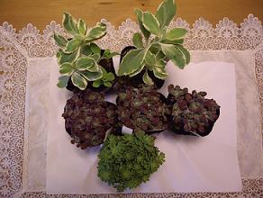球根屋さんから届きました。私のお気に入りのネツトショップで多肉ちゃんをかいました。それが昨日とどきました。とても、丁寧に包装されていましたよ!届いた多肉は、こちらです。上から、ベンケイソウの白覆輪、セダム スパスフォリウム紅系、たぶんパープレウムですよね!そして、おまけでつけてくれた、セダム ネヴイーです。パープレウムとネヴイーは、私がずっと探していたセダムだったので、感激でした。ルンルン♪気分で植え替えましたよw~~。植え替え後は、次回にのせますね~~。本とに多肉っていいですよね
