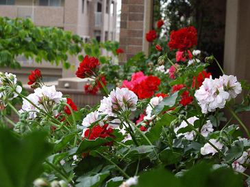 こんにちわ~~ほんとに久し振りの更新で・・・。とほっほ・・・。サボりすぎてしまいました。みなさまお元気ですか?私は元気ですが、なんか最近イヤな事がつづいていて、よけい更新が怠ってしまいました。もう!!お父ちゃんと大喧嘩した!!最近お父ちゃんが大嫌いなぷくぷくです!!さあさ、ブログを更新して、イヤなことは忘れましょう 約2ヶ月お休みいたしました。その間、わが家のベランダはお花がいっぱいさきましたよ~~。まずは、私の大好きなお花です。アイビーゼラニウムです。このお花は知り合いの人からいただいた大事なお花です。毎年、挿し木をして枯れないように大事に大事に、育てています。もう今年で7年くらいかな?団地から持ってきた子ですよ~~ わが家の東のベランダの壁沿いに咲いています!!今年も綺麗に咲きました。でも、植え替えをおこったったのがあるので、いまいち蕾の量が少なくて、残念です来年はちゃんと土変えてあげようと思いました続いて、ブログではあまり更新してない、北のベランダの最近の様子です!! こちらでも、ゼラニウムが咲いています。綺麗でしょう? ワイヤープランツです!!この子はすごい繁殖力です!!すぐに根がつまります・・・。今年植え替えたら、わさっわさっです!! この子は75円で4年前程に苗で買った子だよ。今は1メートル20センチぐらいになりました。3本位一緒に買ったんだけど、みんな突然枯れてしまい最後に残った子です!!うれしいよ今日は反対側のベランダを公開しようかな?ちょうどガーデンテーブルの前のコーナーです。あじさい水無月がさいています!!ここに座ってぼ~~としてます。癒される 最後ににゃんたさんからいただいた観葉植物植え替えましたよ!!どうでしょう? むかって右側の赤い葉の子です。綺麗でかわいい子です!今、とってもお気に入りです!!にゃんたさんありがとう!! 大事にするね!!