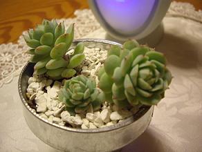 多肉寄せ植え今日は、多肉の寄せ植えです色白ちゃん系でまとめてみました。ちょっと徒長気味の多肉です。我が家は、マンションで日光確保が大変なの。しかもどちらかと言うと、日当たりがめちゃくちゃ悪いのよ~~だから日々、徒長との戦いなのですそれでも、めげずに多肉を買ってしまうのよね~~。今日の多肉は、わたしのお気に入りの、時計周りでホワイトローズ、ローラ、リラシナ(たぶん、違ったら誰か教えてください。)です。この色白ちゃんにうっとりですまるで、わたしを見てるようはっはっはそして、また、こちらが、最近買った色白ちゃんデスメチアです。なんか、一回り大きくなったような気がしますこちらも、うっとりです