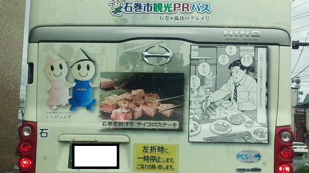 25012017そういや以前から気づいていたんだが話題にならなかったんで取り上げてみるおやおや五郎さん何でこんな所にいるんです?石巻産勝洋牛を食べてんですかい実の所勝洋牛って今初めて知ったわ(^^;って所で思い出した!河北の役場で見た覚えがあった茂洋牛の後継牛とかなんとかだったはず単に牛の写真とブロンズ像が置いてあったんで何となしに見てはいたんで今になって思い出したぜ河北牛とか言ってたような気もするけど定かではないなそして何気に「いしぴょんず」ってゆるキャラがそれこそ初めて見るキャラだなしかし昔から孤独のグルメに目を付けていたんだがドラマ化されて皆そればっか言ってて少々ツマランな俺が初めに知ってたんだぜって言いたいが別に俺が最初って訳でもないんで谷口ジローの成功を喜ぼうかこの手の料理漫画はあまり興味はないんだが孤独のグルメと食の軍師と言う漫画は面白く思っているなこうして見ると、肉食いて~って衝動が湧いてきて腹が減るもんだよ。お囃子は(V)o¥o(V) バルタン