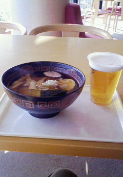 温泉入ってビール飲んでます!