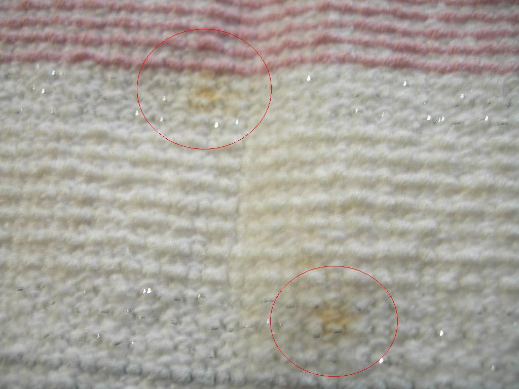 裏ですが黄色っぽい小さなシミが7~9箇所あります。保管中に付いたと思われます。