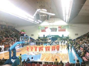 ここ最近、雨ばかりの寒い冬空(さすがパイースバスコ)の日々。ここでは、サッカーも花盛りですが、バスケットも負けじと盛り上がっています。冬のサッカー観戦はちと寒そう・・・でもバスケは室内だから暖かそう。クマさんと3番目の弟の三郎くんはバスケの年会員なので、シーズン中は毎週観戦に行っています。Eurocupという、プロバスケの二部リーグのヨーロッパ大会が今年はプレの町で開催。より盛り上がっております。昨日は三郎君(小中学校のバスケ部のトレーナーをもしている)は、バスケ指導の日だったので、そのEurocupには行けなく、代わりに仕事がオフだったプレがクマさんと一緒に行くことになりました。ほぼ満席、熱気ムンムンです。試合の途中で、チアガール達が色々踊ったり(こっちの方が意外とプレは面白かったりする)、マスコットのクモくんも一緒になって踊ったり、応援団の太鼓や掛け声など会場の雰囲気が楽しかったです。今回の試合は、地元ビルバオ(黒)対モンテネグロ(オレンジ)。クマさん曰く、旧ユーゴ圏のバスケチームはなかなかレベルが高いらしい。ロングシュートやダンクシュートも二チーム共お見事でした。ちょっと面白かったのは、試合が始まる前に、バスクならではの「勝利祈願の踊り(??)」みたいなのが見れたことでした。以前お友達の結婚式でも、この伝統舞踊が見れました。寒いときは、室内スポーツ観戦もなかなか良いものですねぇ。自分自身はスポーツしないのですが、会場の熱気でポカポカ