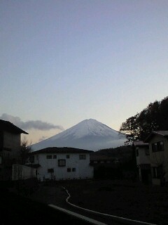 16:00 湖畔へ下る途中の道より。今湖畔にいます。寒さがき~んと気持ちいいっ☆すごくおいしいうどん屋さんがあって、出来上がりました。顔見知りになり、待っている間いつもホットコーヒーをくれます(^-^)今日はおばあちゃんが作ったんで良かったら、とお惣菜をいただきました。ありがたいなー‥。 ・ ・ ・ ・ ・ ・ ・・・・ ・帰り道同じ場所からの富士山